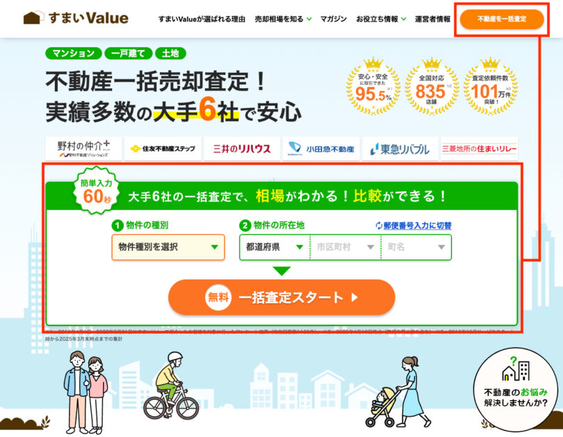 すまいValueは、不動産大手6社が運営する「不動産一括査定サイト」です。