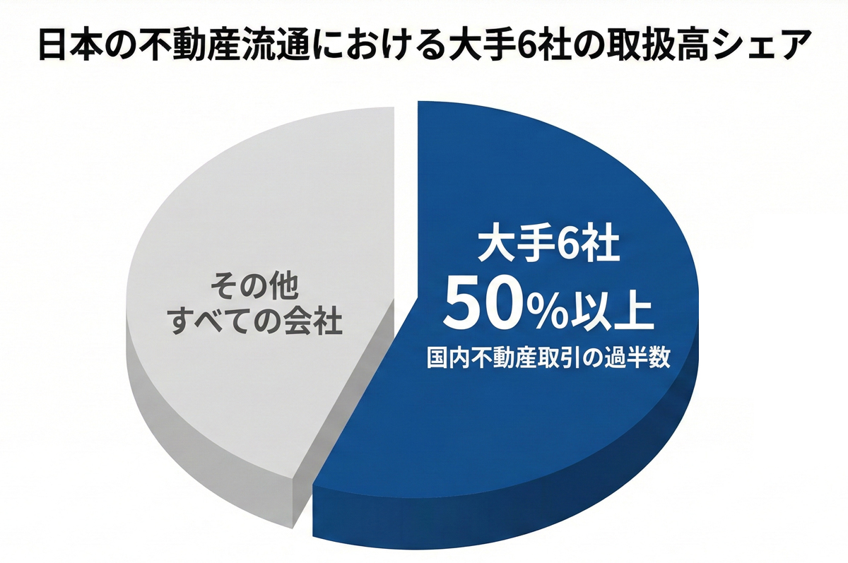 実はこの6社だけで、国内の流通大手の取扱高シェア50%以上を占めています。つまり、日本で売買される不動産の半分以上が、この6社で取引されているのです。