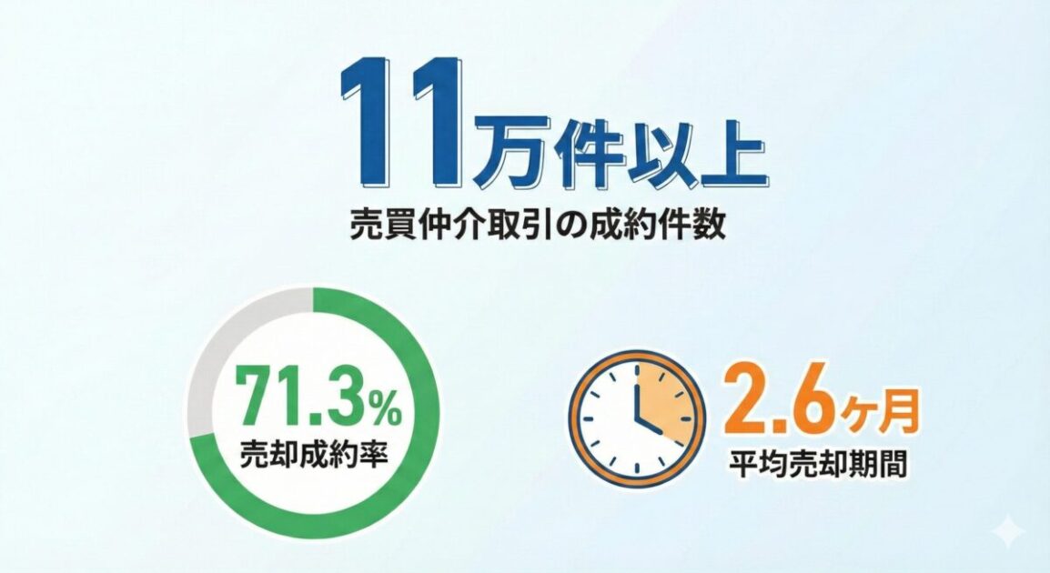 管理職含む売買仲介営業職の宅建保有率は98.6%(2025年2月1日時点)。担当者の知識量や契約トラブルに対する不安を抱える人の安心材料になるでしょう。さらに、226店舗の売買仲介ネットワーク(2025年5月25日時点)と、以下のような売却サービスが早期売却をサポートします。